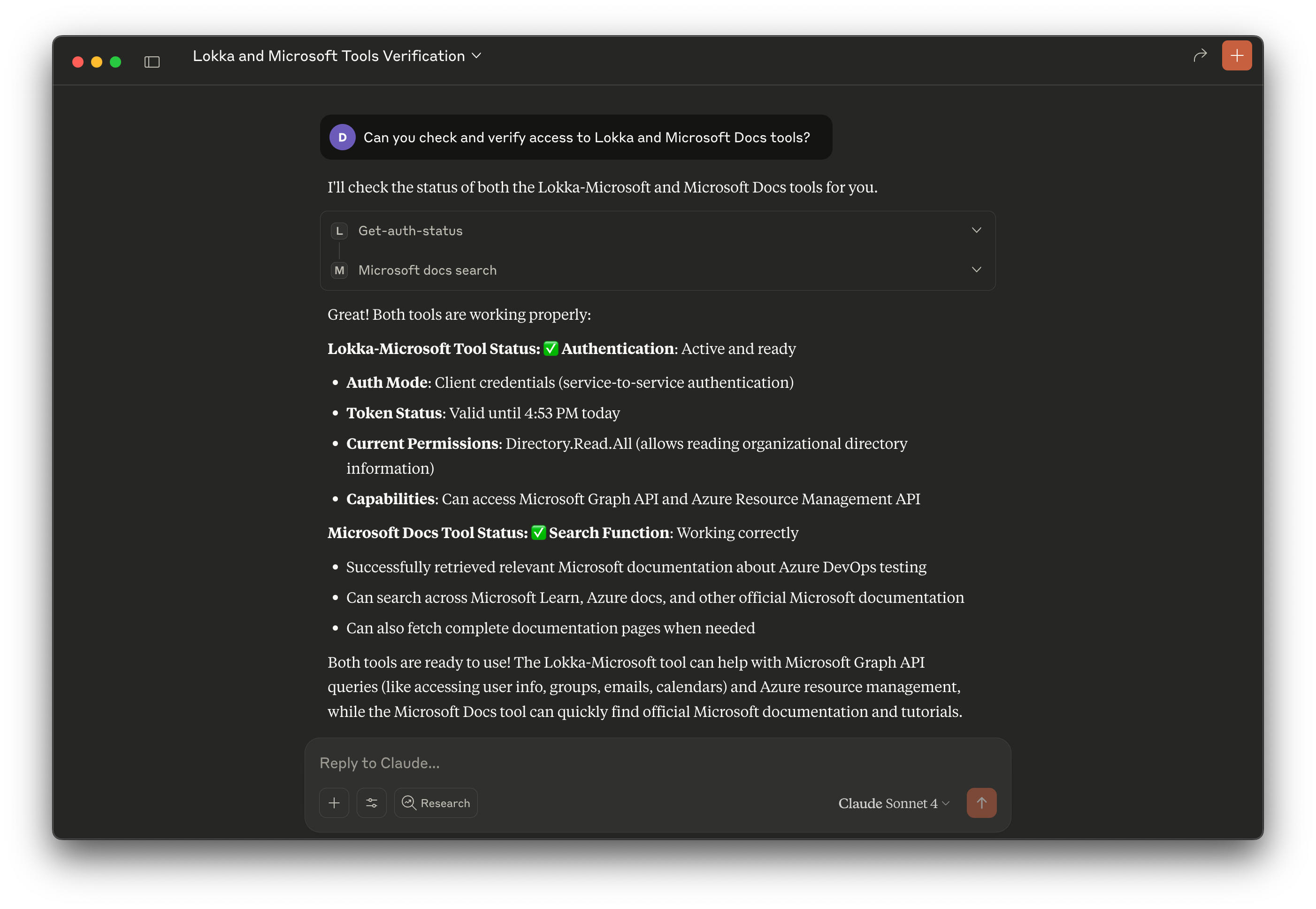 🤖 Can you check and verify access to Lokka and Microsoft Docs tools?
